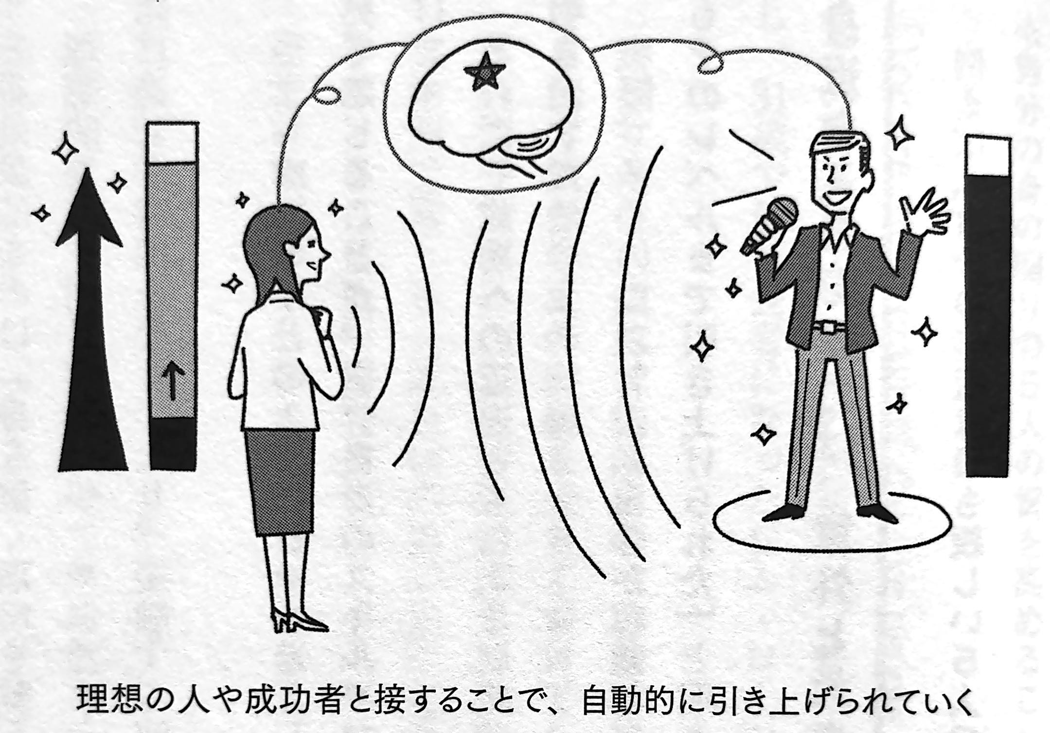 理想的な人、同じ目標(夢)や似たような目標をすでに達成した人(=成功者)と一緒に過ごす時間をつくったり、接触する回数を意図的に増やしたりするわけです。つまり成功者がどのように日々を過ごし、どのように困難に対処しているかを間近で見て感じることが、自分自身のスキルやマインドセットの向上に直接つながるというわけです。