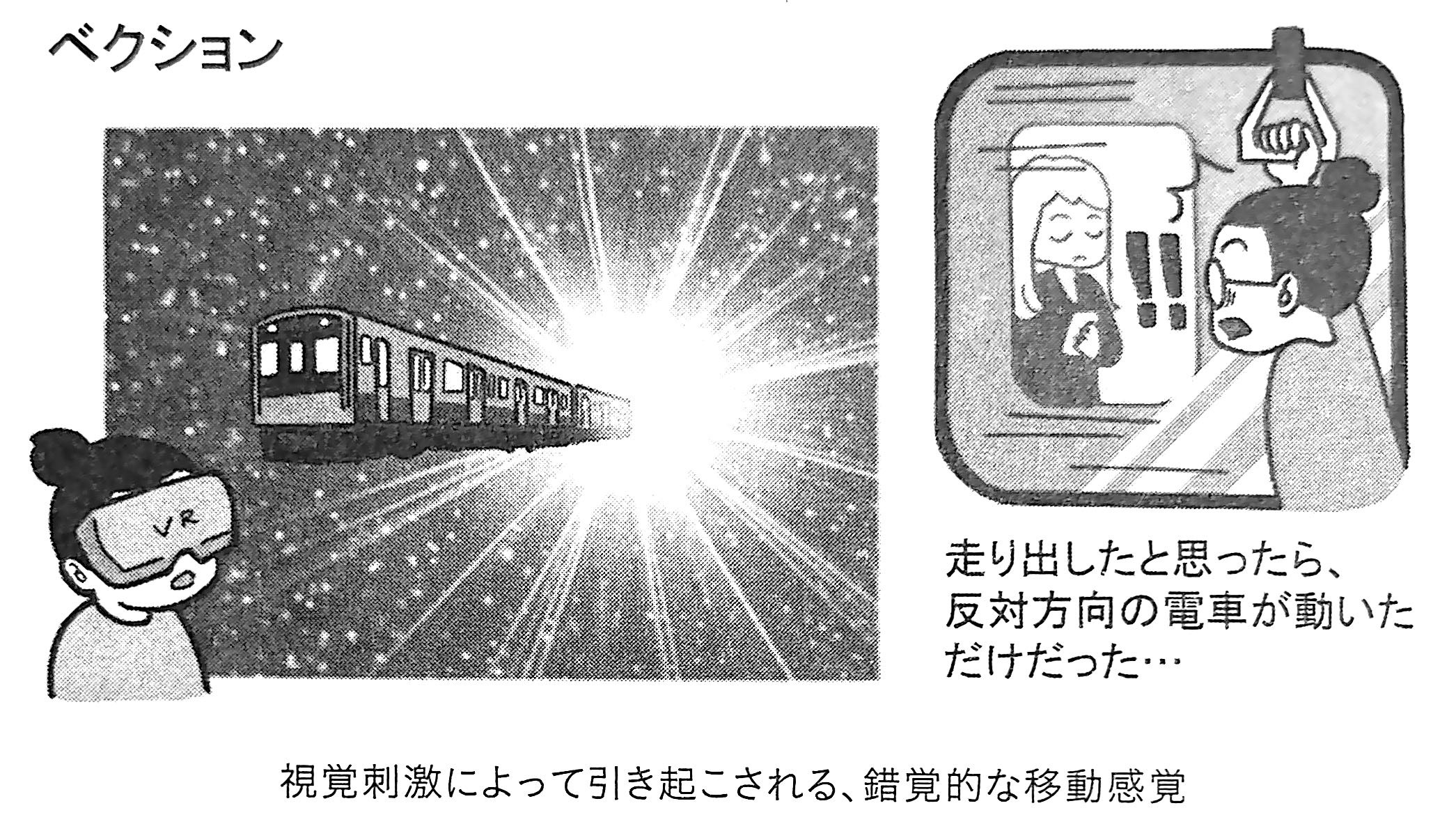 これは「ベクション」と呼ばれる、視覚情報によって脳が「自分が動いている」と錯覚する現象。いま流行りのVRには欠かせない要素です(下の図3を参照)。かつては「地球の周りを太陽が回っている」と信じられていました。ガリレオが「地球が回っている」と主張しても、人々は受け入れなかったのに、いまでは、私たちは地球が自転しながら秒速30kmで太陽の周りを回っていると信じています。