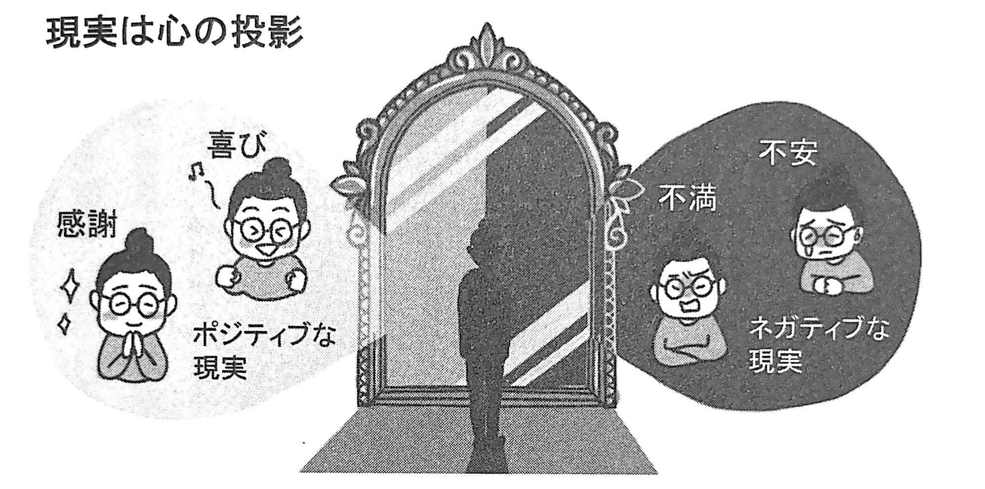 私にとって衝撃的な気づきとなったのが、野口嘉則さんの著書『完全版 鏡の法則』(サンマーク出版)でした。この本の核心は、「私たちが経験する現実は、心の反映である」というもの。