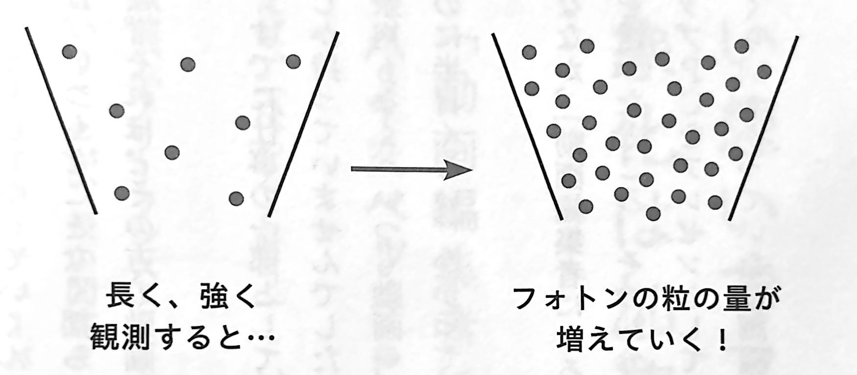 けれども、ある一定の条件を満たすと、形なく広がる「波」のような状態から、一点に収縮された「粒」へと姿を変えるのです。