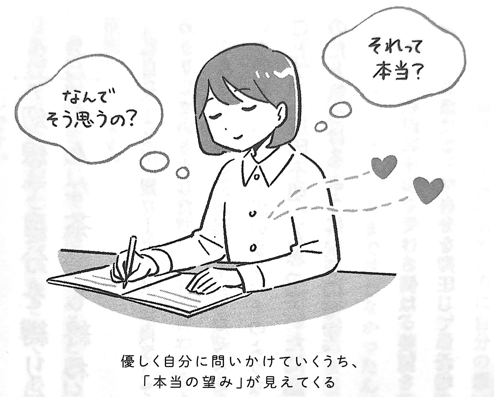 この自己対話をするときのポイントは、誰か大切な人の話を聞くようなスタンスで行うということ。