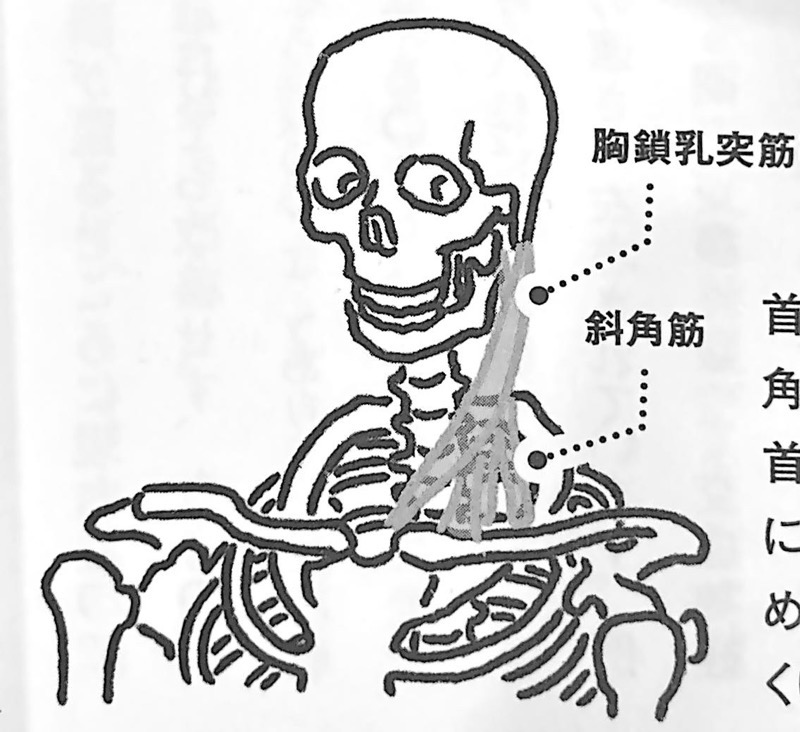 首元で呼吸するため斜角筋や胸鎖乳突筋(きょうさにゅうとつきん)など首周りの筋肉がガチガチに。この2つの筋肉を緩めると胸郭全体で、大きくゆっくり息が吸えるようになります。
