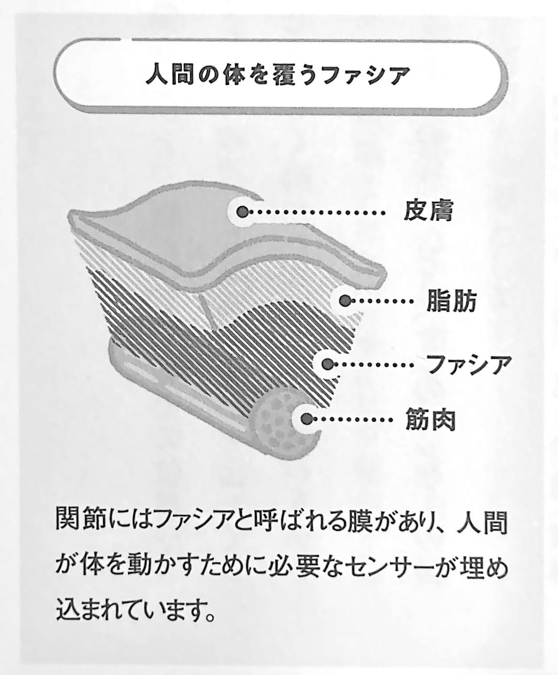 骨と骨のつなぎ目にある関節には、それを覆い囲っている関節砲(かんせつほう)という膜(ファシア)があります。そして、その膜の中にはセンサーが埋め込まれています(下の図1を参照)。