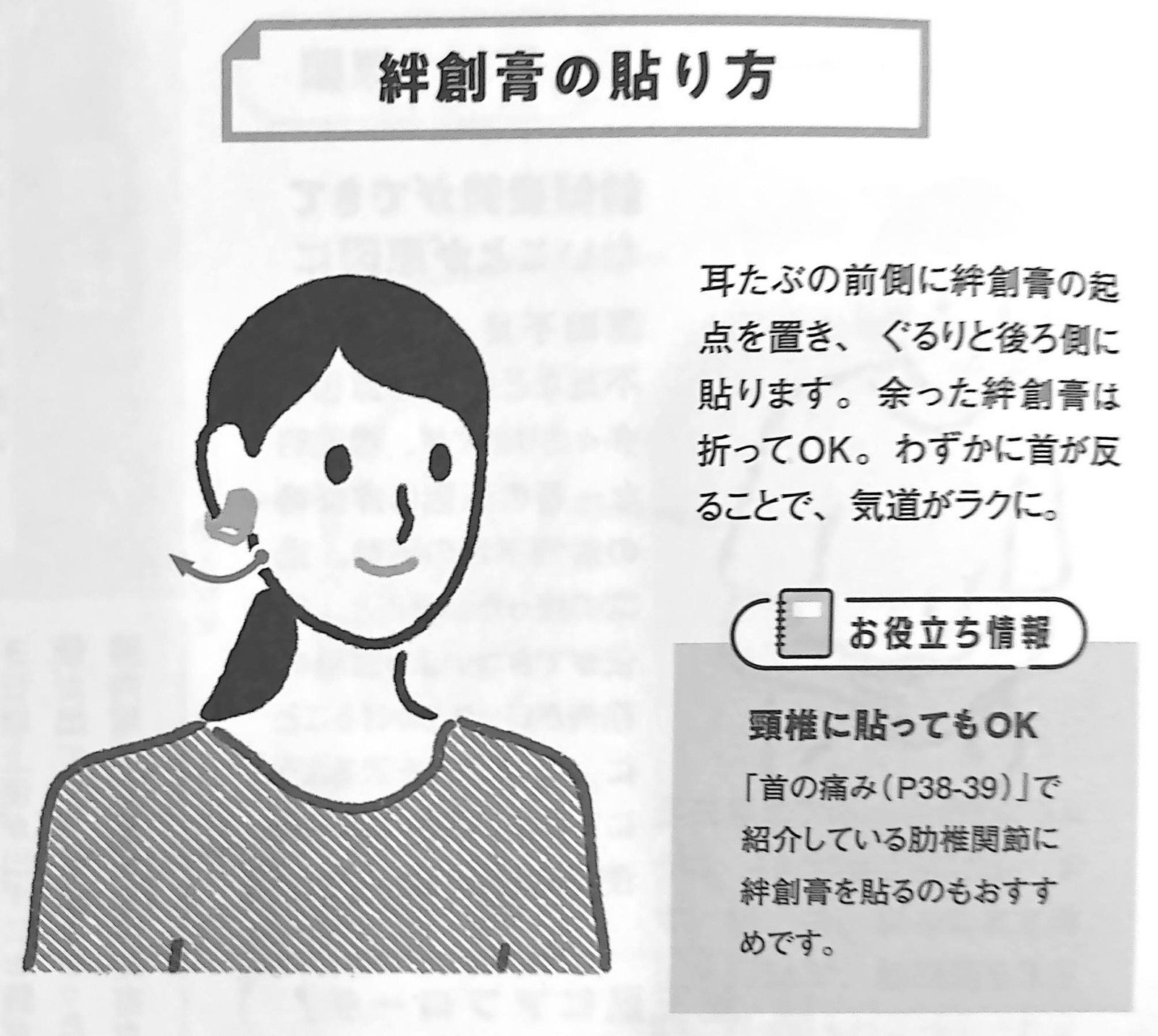 「首の痛み(P38〜39)で紹介している肋椎関節に絆創膏を貼るのもおすすめです(上の図5を参照)。★+αテク