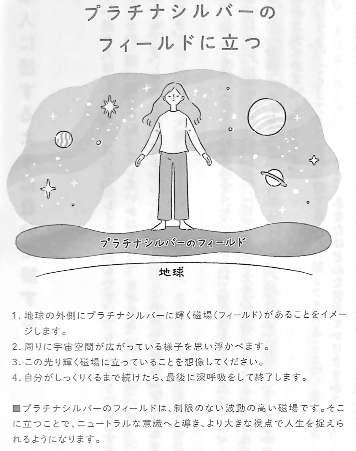 とはいっても、難しいことではなく、自分が「プラチナシルバーのフィールド」の上に立っているのをイメージするだけです。